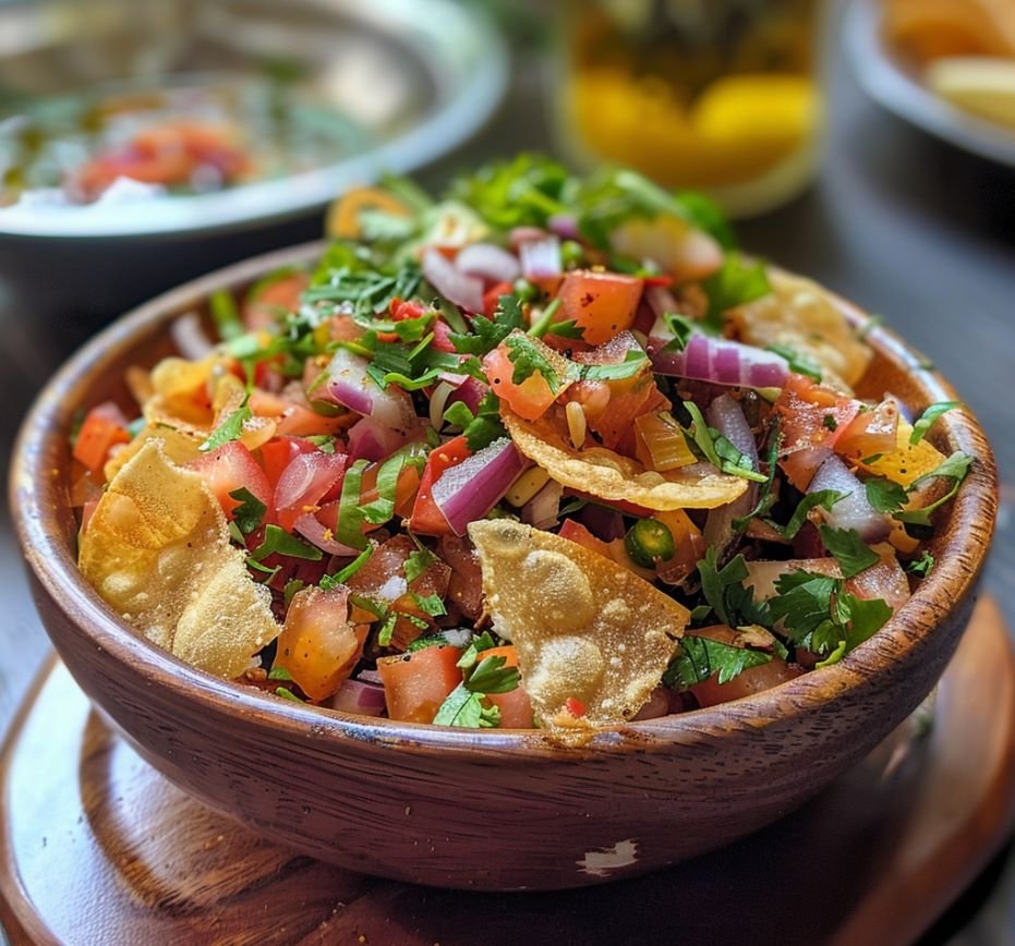 Papdi Chaat is a popular Indian street food known for its delightful combination of crispy papdis (fried dough wafers) and a medley of flavors from various toppings and chutneys.