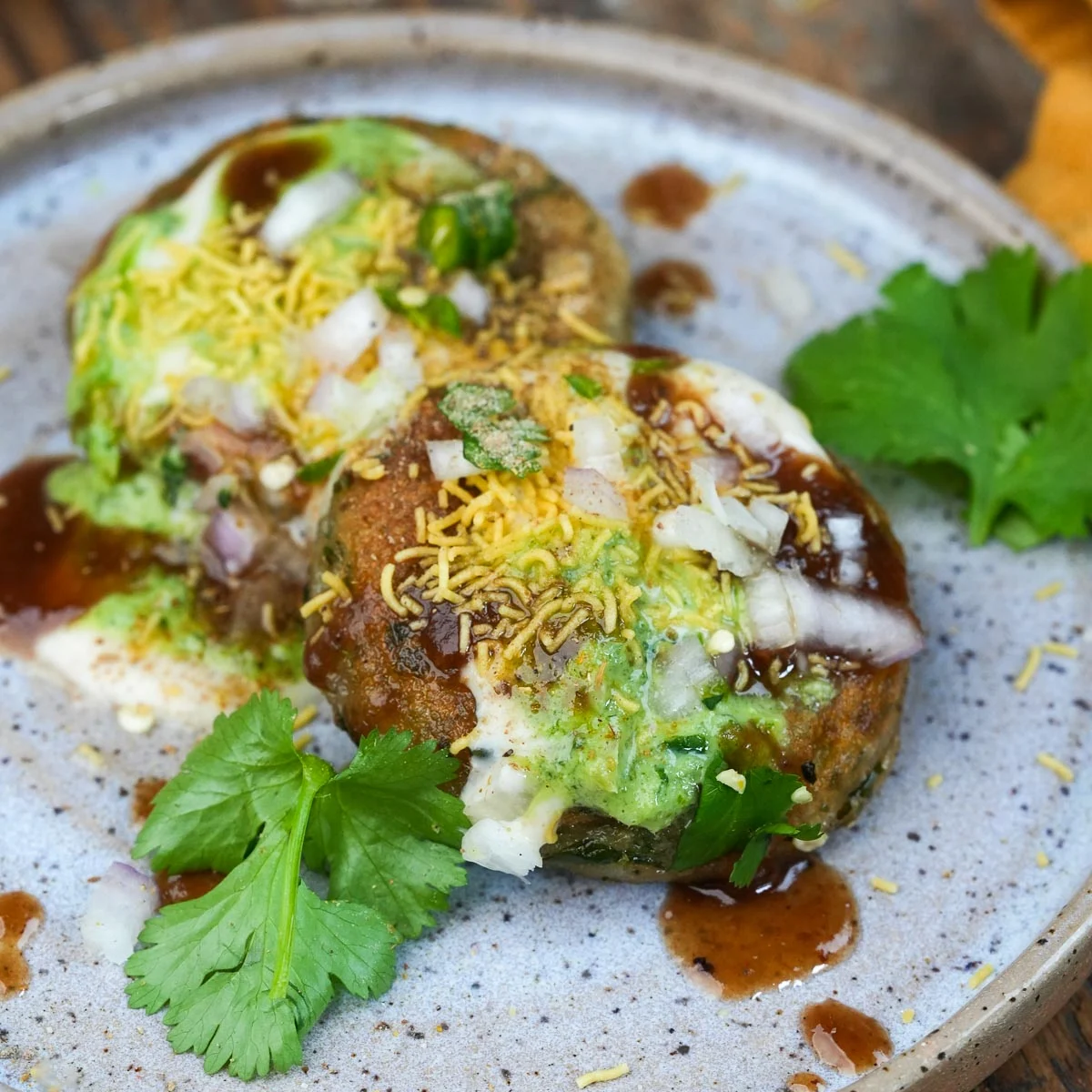 Tikki Chaat is a delicious and popular Indian street food that typically features crispy potato patties (tikkis) served with a variety of toppings.